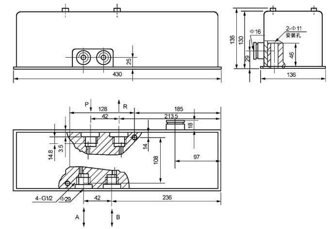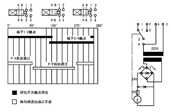 一、概述 24EJF-P型(原SA-V 型)二位四通换向阀是一种采用直流电机驱动阀芯移动,以开闭供油管道或转换供油方向的一种集成化的换向控制装置;即使在恶劣的工作条件下(如低温或高粘度油脂),动作仍相当可靠。 该阀适用于公称压力为40MPa以下的干、稀油集中润滑系统以及液压系统的主支管路中,同时也可作二位四通,二位三通和二位二通三种型式使用。 二、技术参数