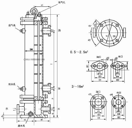 2LQFL型立式冷却器外形图及尺寸